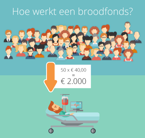 In een broodfonds zegt een groep zelfstandigen toe om elkaar met schenkingen te steunen in het geval van langdurige ziekte. Iedere deelnemer stort maandelijks een bedrag op zijn persoonlijke broodfondsrekening. Hoeveel je inlegt, hangt af van het bedrag dat je wilt ontvangen als je zelf arbeidsongeschikt wordt.
