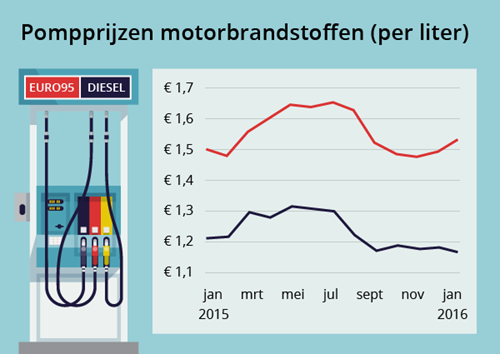 De brandstofprijzen zijn laag en blijven dat nog wel even. Goed nieuws dus voor autobezitters. Wie maximaal voordeel wil, kijkt net over de grens. In België betaal je voor benzine (euro loodvrij) gemiddeld € 1,30. Diesel kost er € 1,11.