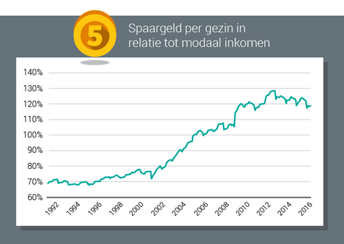 Voor een deel wel. Sinds 2013 zie je dat de hoeveelheid spaargeld per gezin nauwelijks meer toeneemt. Dat komt dus doordat we geld zijn gaan uitgeven: voor het aflossen van een hypotheek, voor het kopen van een huis, voor het financieren van een restschuld of voor een andere grote aanschaf die we in de crisis hebben uitgesteld.