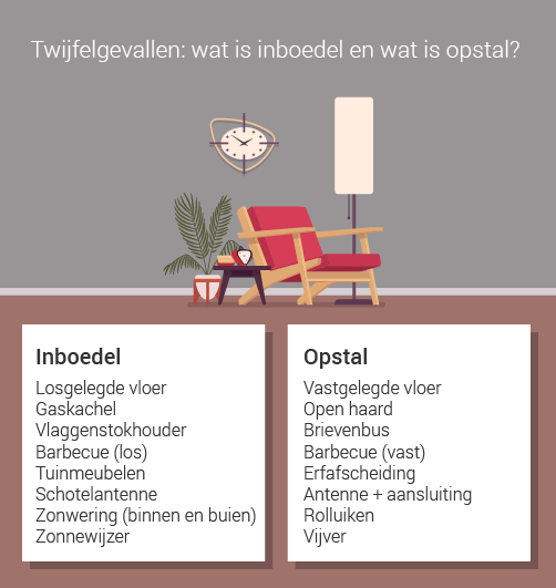Heb je schade aan je huis, dan kan je die verhalen op jouw opstalverzekering. Voor schade aan zaken in de woning heb je een inboedelverzekering nodig. Een logisch onderscheid zou je denken. Soms is het verschil tussen opstal en inboedel toch minder duidelijk. Bijvoorbeeld bij de open haard in je woonkamer, die toch onder de opstalverzekering valt.
