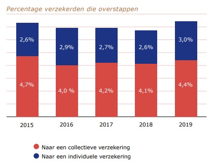 De Nederlandse Zorgautoriteit (NZa) maakt jaarlijks een rapport over de zorgmarkt. Hieruit blijkt dat het aantal overstappers is gestegen ten opzichte van een jaar eerder. Sinds 2016 was er slechts één jaar waarin meer mensen van zorgverzekering switchte. Overigens komt het ook voor dat mensen overstappen naar een ander label waar uiteindelijk dezelfde hoofdverzekeraar aan hangt. Die tellen niet mee voor het aantal overstappers.